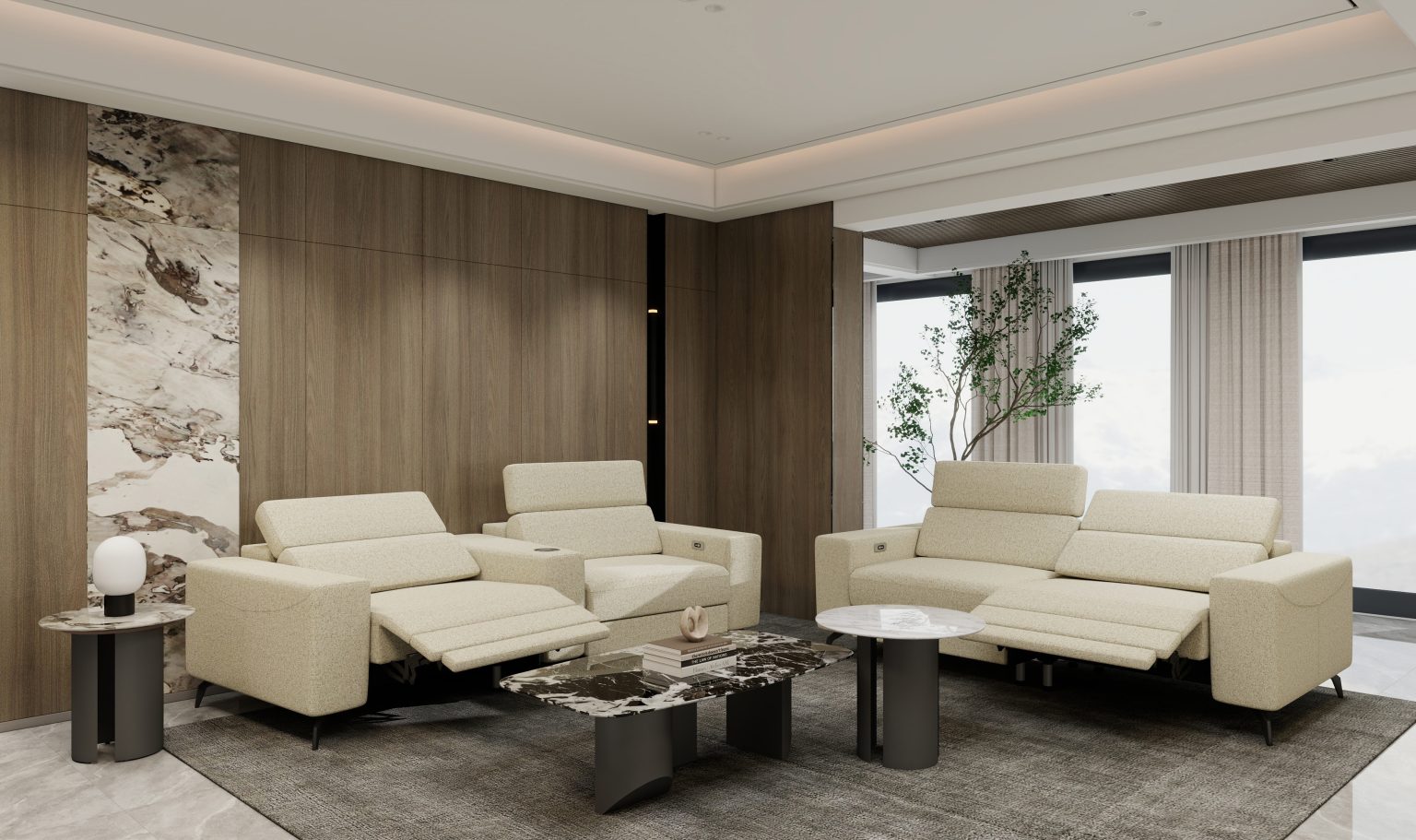 Relax in style with Pearce — a modern incliner sofa featuring power recline, USB charging, and an adjustable headrest for personalized comfort. Its modular design adapts effortlessly to any space, big or small. Perfect for lounging, working, or winding down.