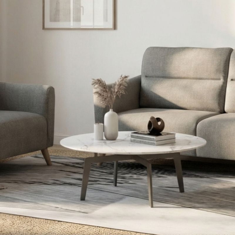 Round Platinum Diamond Natural Marble Coffee Table (0.8m)